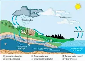 Yeraltı suları sadece topraklarda ve kayalardaki gözenekleri veya çatlaklara tamamen doymuş yeraltı sularıdır. Yeraltı suyu yağışla doldurulur ve yerel iklim ve jeolojiye bağlı olarak, hem miktarda hem de kalitede değişiklik gösterir. Yağmur düştükçe veya kar eridiğinde, suyun bir kısmı buharlaşır, bazıları bitkiler tarafından, bazıları karadan akar ve derelerde toplanır ve bazıları, toprağın ve kayaların gözeneklerine veya çatlaklarına sızar. Topraktan giren ilk su, önceki bir kuru dönem boyunca buharlaştırılan veya bitkiler tarafından kullanılan suyun yerini alır. Bu doymamış bölgede genellikle az miktarda su bulunur, çoğunlukla toprak ve kaya daha küçük açıklıklardadır ; Büyük açıklıklar genellikle su yerine hava içerir. Kayda değer bir yağmurdan sonra bölge neredeyse doymuş olabilir; Uzun kuru geçen bir mevsimden sonra ise kurumuş olabilir. Bazı su doymamış bölgede moleküler cazibe tarafından tutulur ve bir kuyuya doğru akmaz veya kuyuya girmez.